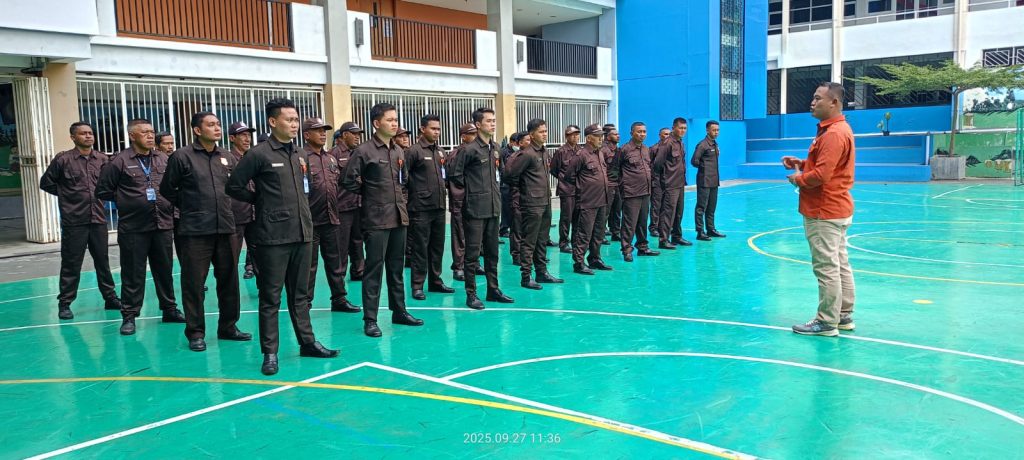 Jakarta- Yayasan Bunda Hati Kudus (YBHK) mengadakan petihan Satuan Pengamanan (Satpam) di aula Sekolah Tarsisius 1 (Sabtu, 27 September 2025). FX. Sriwidodo Ananto, S.Pd. M. M., Kepala Bidang Pelatihan menyampaikan pengarahan teknis kepada para Satpam agar profesional dalam menjalani tupoksi (Tugas Pokok dan Fungsi).