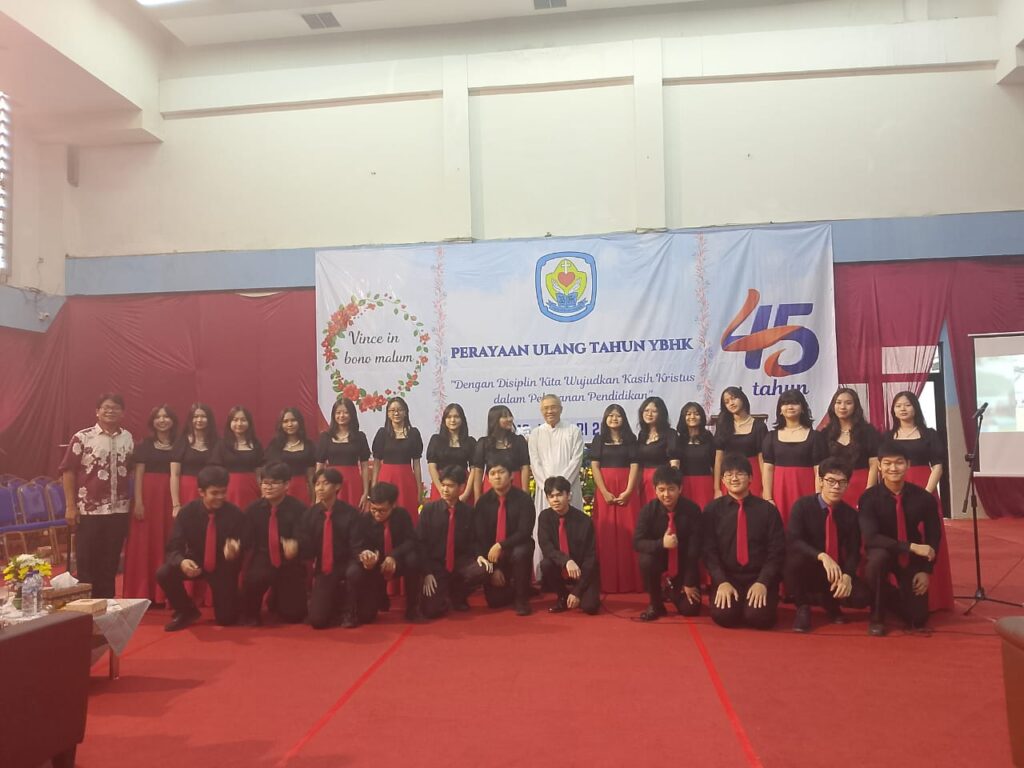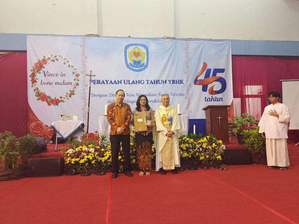 Jakarta-Perayaan ulang tahun Yayasan Bunda Hati Kudus (YBHK) ke-45 dirayakan secara meriah oleh para pembina, pengurus, guru dan karyawan (Sabtu, 10 Januari 2026). Perayaan ulang tahun kali ini diadakan di aula serba guna Sekolah Tarsisius 1, yang diketuai oleh ma’am Yosepha Tanti Winarni, S.Pd., M.M. Dalam sambutannya, ma’am Tanti mengajak seluruh hadirin untuk merayakan ulang tahun YBHK dengan penuh antusias dan sukacita. “Mari kita bersyukur dan bersukacita atas perayaan ke-45 tahun YBHK,” katanya